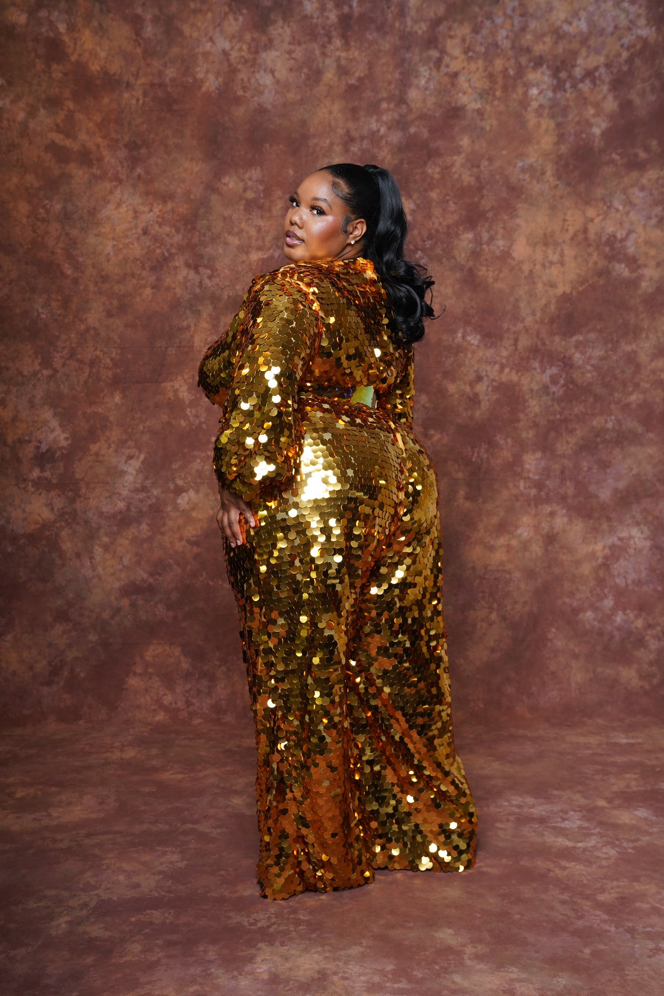 Gold Sequins jumpsuit-The belt is included-Zipper closure in the back-Inseam 37" (Custom length available)